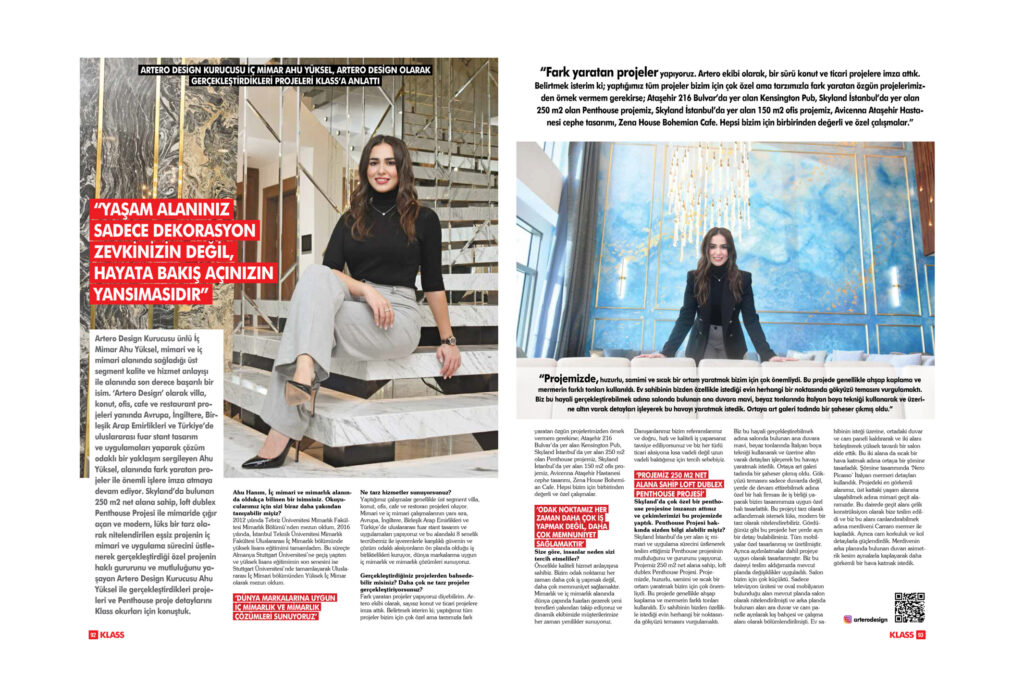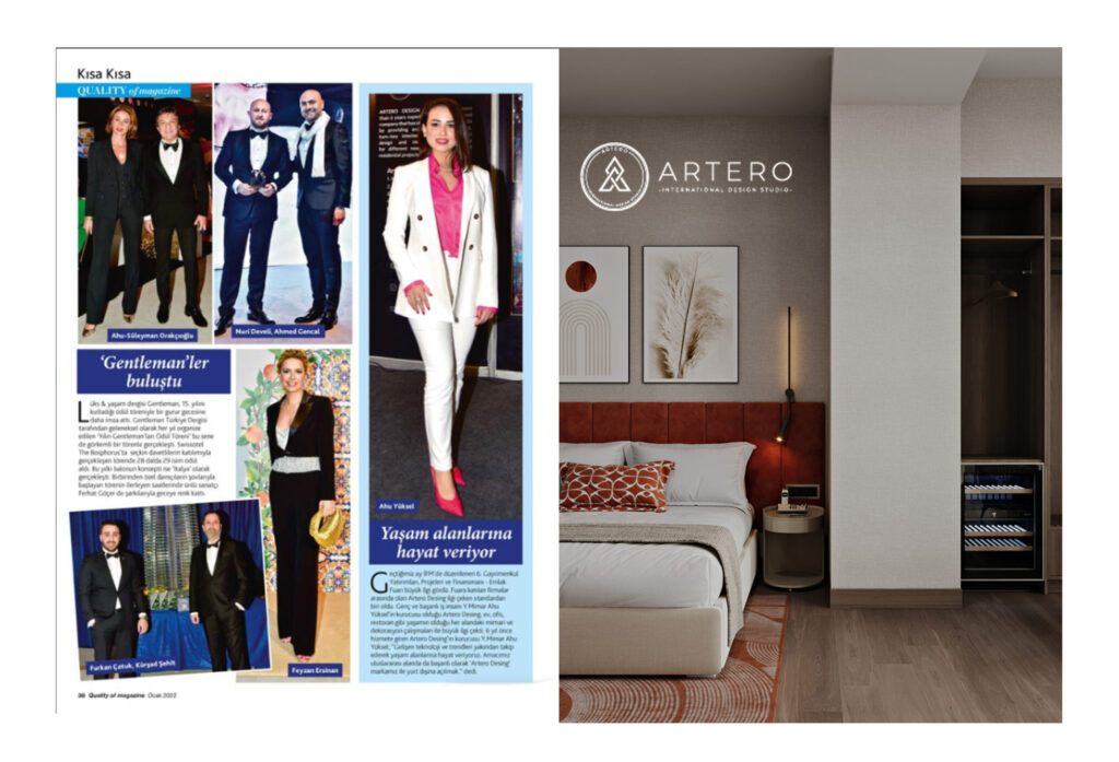 Artero Design Kurucusu başarılı İç Mimar Ahu Yüksel, Artero Design markasıyla residence, villa, konut, ofis, kafe ve restoran projeleri yaparak çözüm odaklı bir yaklaşım sergiliyor. Mimaride çığır açan modern ve lüks çalışmalarını hayata geçiren ünlü iç mimar sektöründeki gözleri üzerinde topluyor.